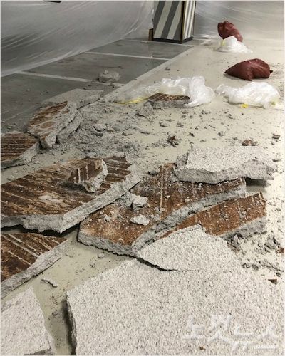 소방당국에 따르면 지난 27일 오후 5시 9분쯤 경남 창원시 마산회원구 양덕동 한 아파트 지하 2층 주차장에서 천장 구조물이 떨어졌다.