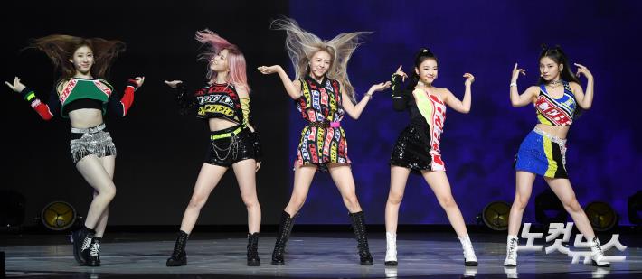 걸그룹 있지(ITZY)가 29일 오후 서울 용산구 블루스퀘어에서 첫 미니앨범 ‘IT'z ICY(있지 아이씨)' 발매 쇼케이스를 갖고 타이틀곡을 선보이고 있다.
