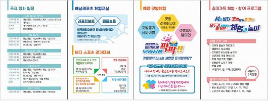 특히 황금조개 찾기에선 갯벌 속에 황금모형의 조개를 숨겨놓고 찾는 사람에게 상품권 등 다양한 경품을 지급한다. 무대 주변에는 풀장과 에어 바운스가 있어 온가족이 함께 물놀이를 즐길 수 있다. 갯벌 공방, 문화예술 체험 등 다양한 체험부스와 홍보부스, 음식부스도 운영한다.