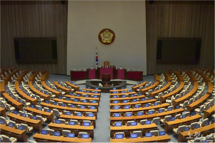 1일 오후 서울 여의도 국회 본회의장이 텅 비어 있다. 국회는 이날 오후 2시에 본회의를 열어 추경, 일본의 경제보복 철회 요구 결의안 등을 처리할 예정이었으나 국회 예산결산특별위원회의 추경 심사 진행 상황을 고려할 때 제시간 개의가 어렵다고 판단, 4시로 연기했으나 여야가 이견을 좁히지 못해 이마저도 연기됐다. (사진=박종민 기자)