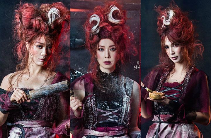 '러빗 부인' 역의 옥주현, 김지현, 린아는 이번 캐릭터 포스터에서 그로테스크한 매력을 한껏 살렸다. '러빗 부인' 특유의 강렬한 레드 컬러 헤어와 의상을 입은 세 배우는 몽환적이면서도 거부할 수 없는 아름다움으로 매력적인 악녀의 탄생을 예고했다.