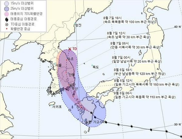 제8호 태풍 프란시스코 예상 경로 6일 오전 6시 기준. (사진=기상청 홈페이지 캡처)