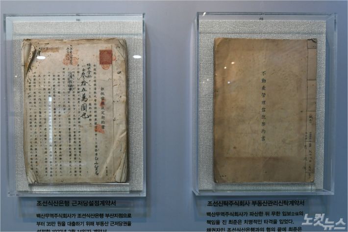 3.1운동 대한민국임시정부 수립 100주년 특별전 '나라가 없으면 부자도 없다' 전시 된 조선식산은행 근저당설정계약서, 부동산관리신탁계약서