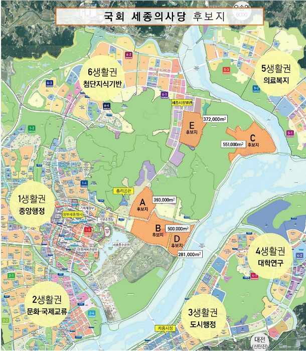 국회 분원인 세종의사당에 예결위를 비롯해 상임위 10개가 이전하는 방안이 제시됐고, 부지는 세종호수공원과 국립세종수목원과 인접한 B부지(아래 이미지 참조)가 유력하게 거론되고 있다.