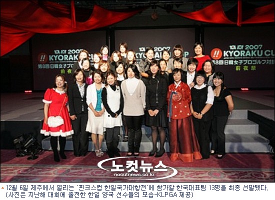 12월 6일 제주에서 열리는 ''핀크스컵 한일국가대항전''에 참가할 한국대표팀 13명이 최종 선발됐다.