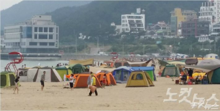 지난해까지 부산 해운대구 송정해수욕장에서 운영되던 텐트존(야영장)이 올해부터 운영을 중단하면서, 이용객이 급감한 것으로 나타났다.(사진=강민정 기자)