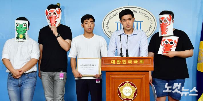 학생들, 가재.개구리. 붕어 가면쓰고 조국 후보자 관련 기자회견