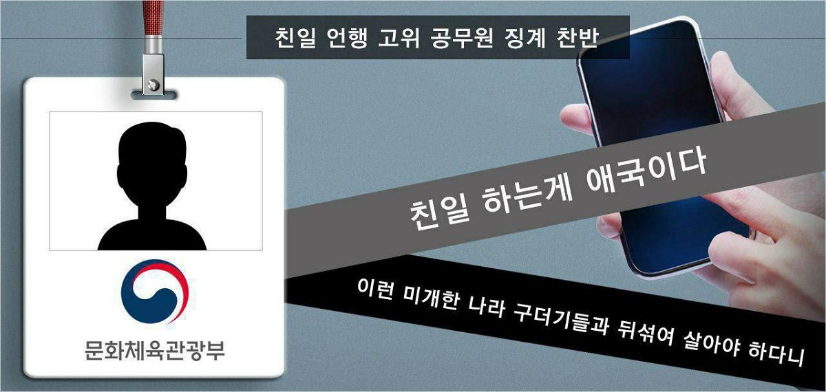 ◆ 이택수> 문화체육관광부의 고위 공무원입니다. 2급 공무원인데 한 모 국장인데 SNS를 통해서 "친일하는 게 애국이다. 욱일기는 2차 대전 전부터 사용됐는데 이것을 전범기라고 모욕하는 것은 있을 수 없다. 또 이런 미개한 나라 구더기들과 뒤섞여 살아야 하다니" 등의 글을 게시해서 큰 공분을 샀습니다.