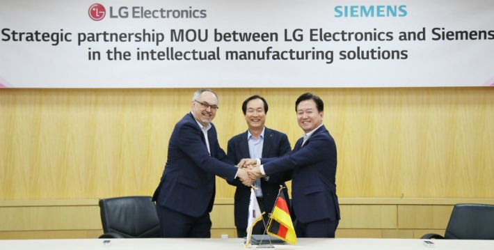 LG전자는 독일의 전기전자기업인 지멘스(Siemens)와 '제조 지능화 솔루션' 공동개발을 위한 양해각서(MOU)를 체결했다고 28일 밝혔다.