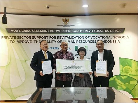 KT&G는 전날 자카르타 소재 인도네시아 경제조정부에서 현지 정부 유관기관, 국제구호개발 NGO와 커피 직업훈련학교 '커피랩(Coffee Lab)' 후원을 위한 3자 업무협약(MOU)을 체결했다.