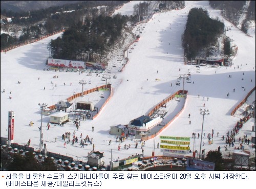 도심에서 40~50분 이내에 도착할 수 있어 서울을 비롯한 수도권 스키 마니아들이 주로 찾는 베어스타운도 총 11개 슬로프 가운데 초급자 코스인 리틀베어와 중급 코스인 빅베어 등 2개 면을 20일 오후시범 개장하고 내달 초 전체 슬로프를 완전 개방할 계획이다.