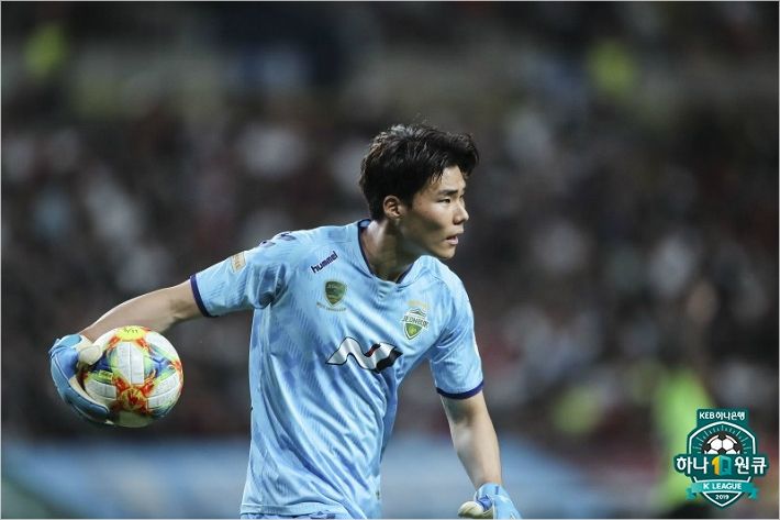 전북 골키퍼 송범근은 정원진의 페널티킥을 선방한 데 이어 다시 공을 잡아 재차 시도한 슛까지 막고 귀중한 승리를 지켰다.(사진=한국프로축구연맹)