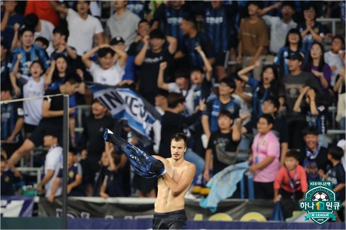 인천의 외국인 공격수 무고사는 후반에만 해트트릭하며 선두였던 울산과 홈 경기에서 극적인 3대3 무승부를 이끌었다. 덕분에 인천은 다시 최하위에서 탈출하며 강등권 탈출 도전을 이어갔다.(사진=한국프로축구연맹)