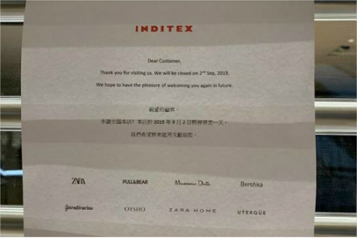 '범죄인 인도 법안'(송환법) 반대 일환으로 홍콩 내에서 총파업과 동맹휴학이 진행중인 가운데 총파업 기간 동안 매장을 닫은 스페인 의류 브랜드 자라(Zara)가 홍콩 시위대를 지지했다는 이유로 중국 관영매체의 맹공을 받았다. 파문이 확산되자 자라는 총파업을 지지한 적이 없다며 관련성을 부인했다.