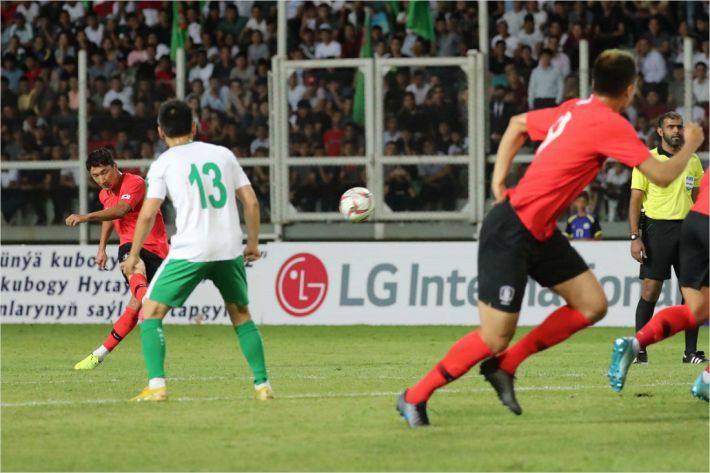 10일 투르크메니스탄전에서 터진 정우영의 프리킥 골이 처음이다.