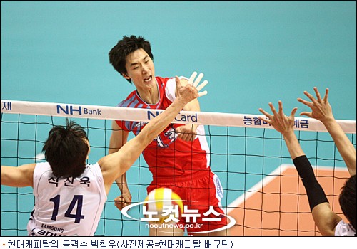 22일 오후 2시30분 대전 충무체육관에서 진행된 ''NH농협 2008~2009 V리그'' 개막전 삼성화재와 현대캐피탈의 라이벌 경기에서 웃은 것은 현대캐피탈이었다. 현대캐피탈은 홈팀인 삼성화재를 상대로 3-1(25-22 25-16 22-25 25-22)로 승리하며 개막전 승리를 거뒀다.