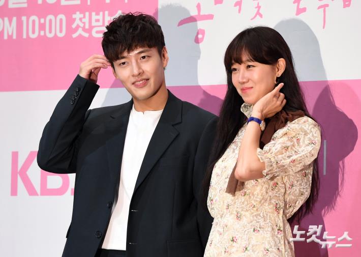 배우 강하늘과 공효진이 17일 오후 서울 구로구 라마다호텔에서 열린 KBS 2TV 수목드라마 '동백꽃 필 무렵' 제작발표회에 참석해 포즈를 취하고 있다.
