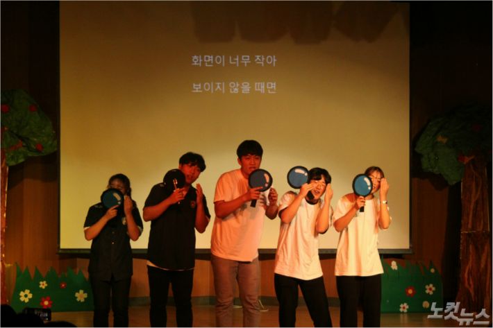 학생들은 대학생 예비 교사들의 노래와 춤, 수화를 따라 하며 공기의 성질, 빛의 합성 등의 과학 원리를 익혔다.