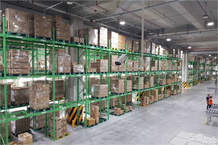다이소 부산허브센터 내 물품을 보관 중인 모습. (사진=부산CBS 박진홍 기자)