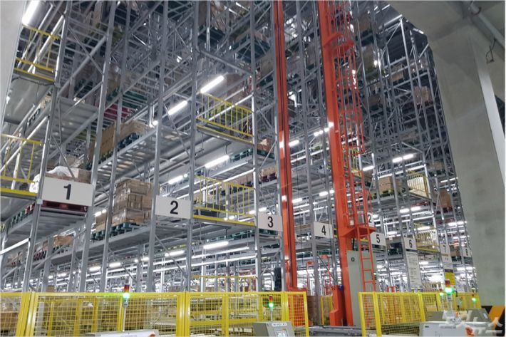 다이소 부산허브센터는 40m 높이의 거대한 자동창고에서 상품을 찾아 옮기지 않고도 자동으로 보관 처리가 가능하다. (사진=부산CBS 박진홍 기자)