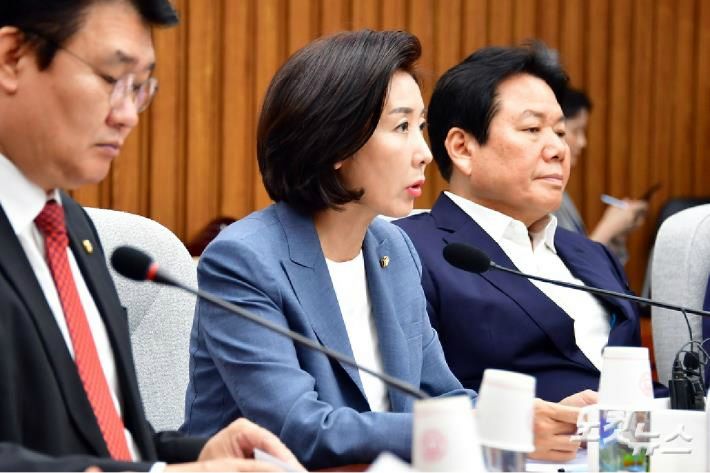 자유한국당 나경원 원내대표가 27일 오전 국회에서 열린 당 원내대책회의에서 모두발언을 하고 있다. (사진=윤창원 기자)