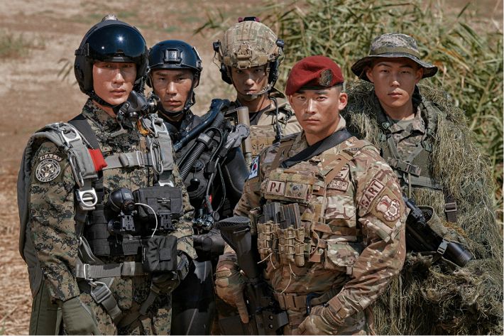 이번 화보 '대한민국 최극강 국군'은 최강의 능력으로 극한의 단련을 거듭하는 국군이 주제다.