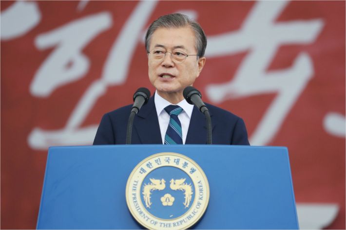 문 대통령은 "한반도에 사는 누구나 자자손손 평화와 번영을 누리며 살아야 한다"며 "우리 군의 강한 힘이 그 꿈을 지켜주고 있다"고 말했다.
