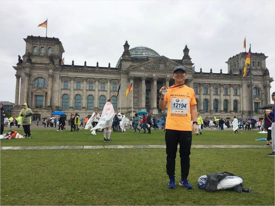 바른미래당 안철수 전 의원이 지난달 29일(현지시간) 베를린 마라톤 대회에 출전해 기념촬영 하고 있다.(사진=연합뉴스)