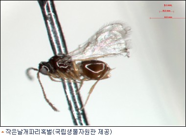 이 조사에서 신종으로 발견된 작은날개파리혹벌은 길이 1mm정도의 작은 벌로, 파리유충에 알을 낳고 이 알이 부화돼 성장하면서 파리 유충을 죽이는 것으로 확인됐다.
