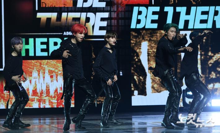 보이그룹 에이비식스(AB6IX)가 7일 오후 서울 동대문구 경희대학교 평화의전당에서 열린 첫 정규앨범 '6IXENSE(식스센스)' 발매 기념 쇼케이스에 참석해 화려한 공연을 선보이고 있다.