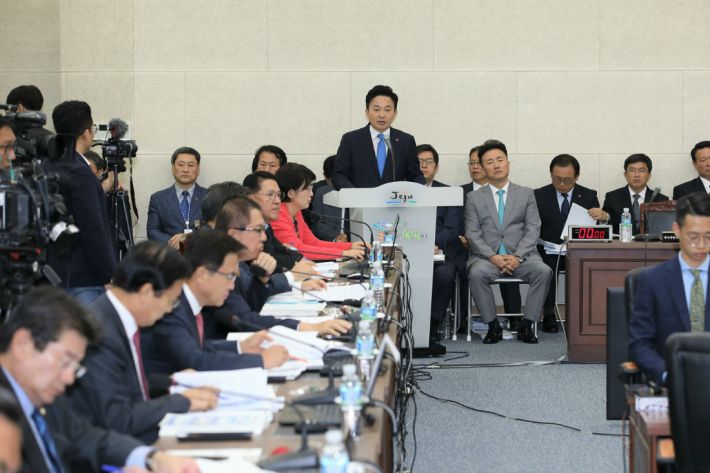 오영훈 의원은 "농산물 해상운송비 지원이 지난해 국회 예산 심의에서 상임위원회를 넘어섰지만 예결위원회를 넘지 못했다"며 "제주도 기획조정실장께서 책임지고 예결위 통과를 맡아 달라"고 주문했다.