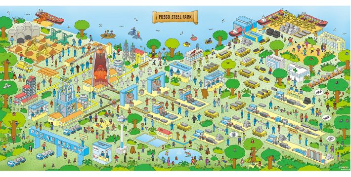 포스코가 철강 생산 공정을 한 눈에 쉽게 볼 수 있는 일러스트 'POSCO Steel Park'로 제작해 시민들에게 한걸음 더 다가선다.