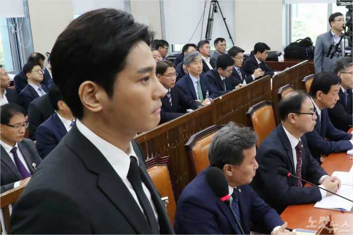 '버닝썬 사태'의 최초 제보자인 김상교씨가 24일 국회 행정안전위원회 국정감사에 참고인으로 출석했다.