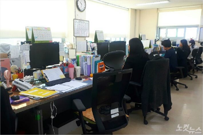강릉시 정신건강복지센터 사무실 안으로, 직원들은 협소한 공간에서 적은 인원으로 일하고 있다. (사진=유선희 기자)
