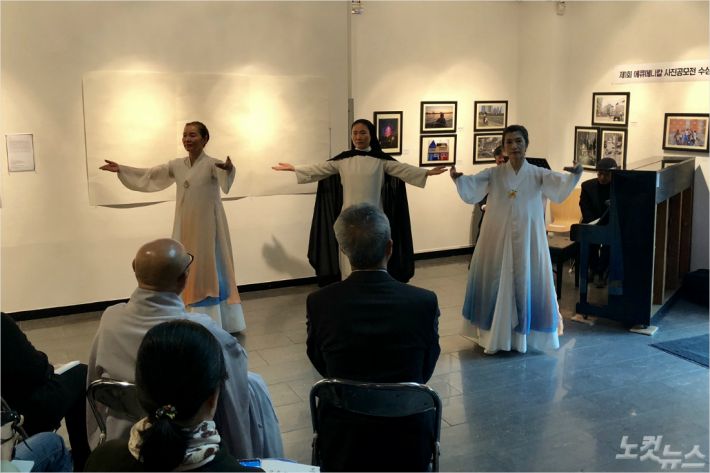 천주교 성인의 '몸 기도'에서 유래해 몸을 사용해 소통하는 춤을 뜻하는 이른바 '체화무(體化舞)'입니다.