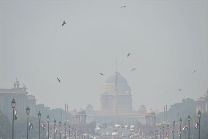 대기오염 탓에 잘 보이지 않는 인도 뉴델리 정부청사 (사진=AFP 제공/연합뉴스)