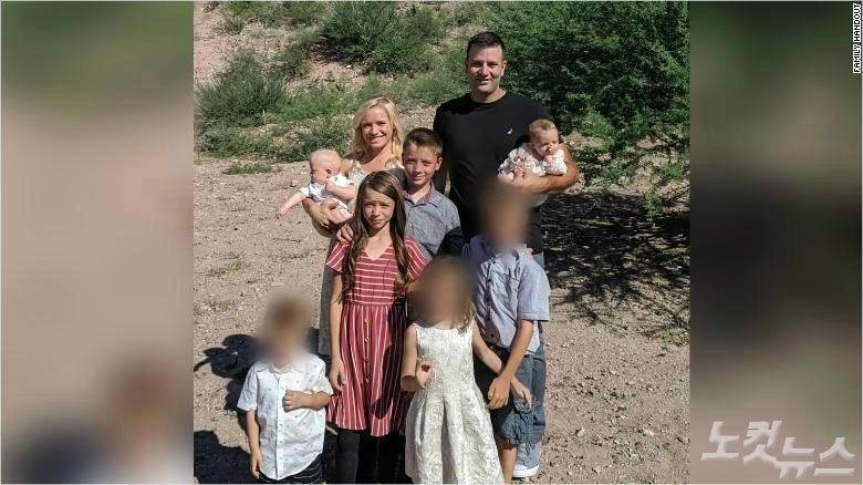 7명의 자녀를 둔 밀러 부부. 총격으로 밀러씨(남편)와 3명의 자녀(모자이크)를 뺀 부인과 나머지 자녀 4명이 총격으로 숨졌다. 밀러씨는 사고 당시 미국에 있었고 아내는 사고 차량을 운전중이었다.(사진=CNN)