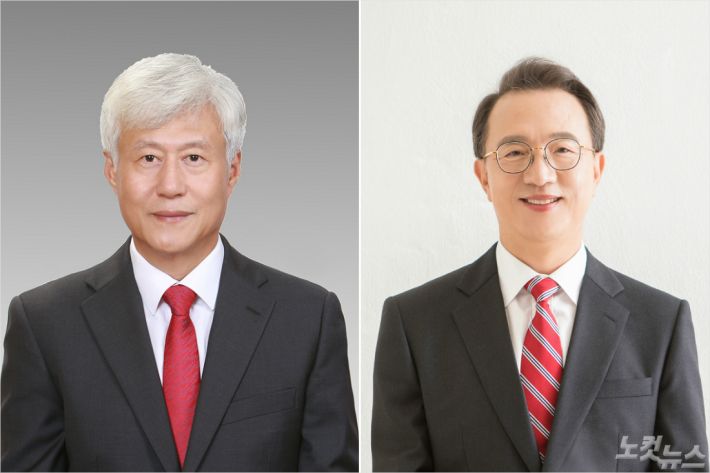 강릉원주대학교 제4대 총장 임용후보자 1순위에 선출된 반선섭(왼쪽) 교수와 2순위 정강연 교수. (사진=강릉원주대 제공)