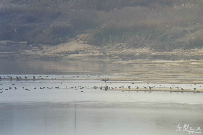 ◆임희자> 얕은 물을 좋아하고 모래톱을 필요로 하는 새들은 볼 수 없었는데, 이번에 모래톱이 드러난 곳에 재두루미가 찾아왔습니다. 재두루미는 낙동강이나 주남저수지에 기착했다가 일본 이즈미로 넘어갑니다. 그동안 볼 수 없었던 재두루미가 찾아온 겁니다.