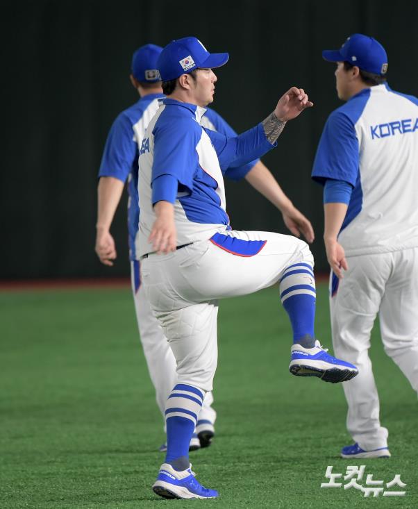 11일 오후 일본 도쿄돔에서 열리는 2019 WBSC 프리미어 12 슈퍼라운드 대한민국과 미국의 경기전 선수들이 몸을 풀고 있다.