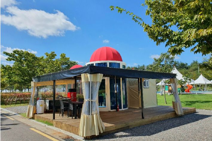 캠핑장은 2만8천150㎡ 부지에 오토캠핑 사이트 27개, 야영장 사이트 30개, 찜질방, 취사동, 모래 놀이터 등을 갖췄다.