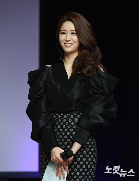 쇼호스트 이은비가 19일 오전 서울 강남구 일지아트홀에서 열린 남성듀오 '캔' 의 싱글앨범 발매 쇼케이스에 참석해 진행을 하고 있다.