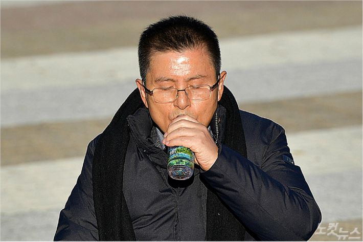 두꺼운 겨울 점퍼를 입고 나타난 황 대표는 준비한 호소문 낭독 전 점퍼를 벗고 정장 차림으로 마이크 앞에 섰다.