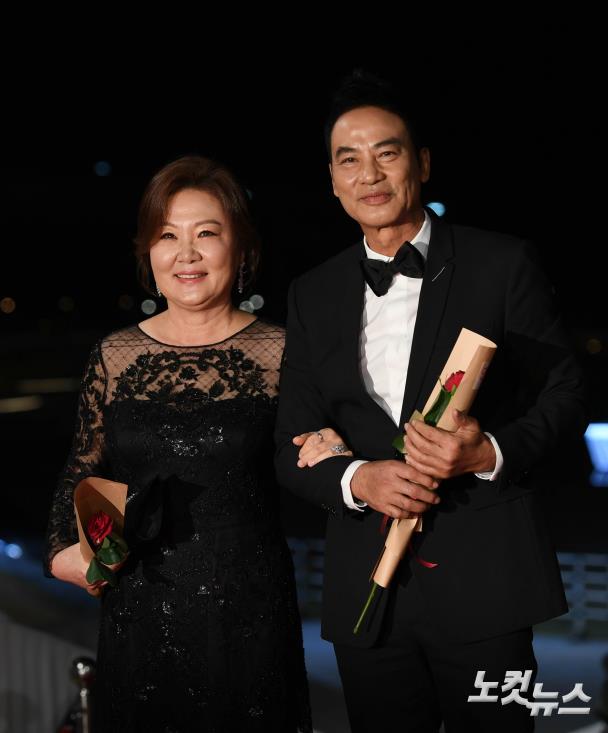 배우 김해숙-임달화가 21일 오후 인천 영종도 파라다이스 시티에서 열린 제40회 청룡영화제 레드카펫에 참석해 포즈를 취하고 있다.