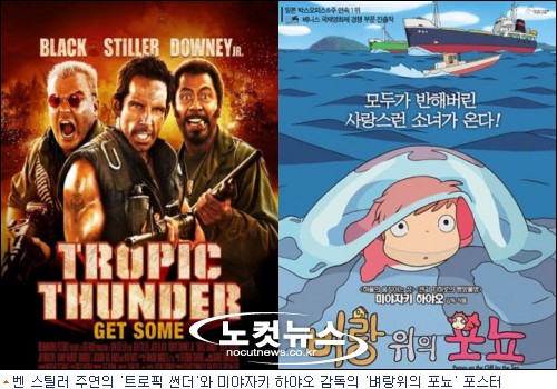 벤 스틸러가 연출, 각본, 주연을 맡은 ''트로픽 썬더''는 전쟁 영화 촬영장이 진짜 전쟁터가 돼버린 해프닝을 다루고 있습니다. 애니메이션 영화 ''벼랑위의 포뇨''는 가출한 물고기 소녀 포뇨와 어촌 마을 소년 소스케와의 좌충우돌 모험담을 그리고 있습니다.