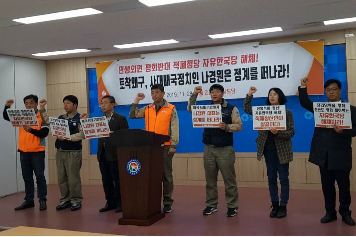 도당 기자회견 통해 "매국정당 자유한국당 해체" 촉구