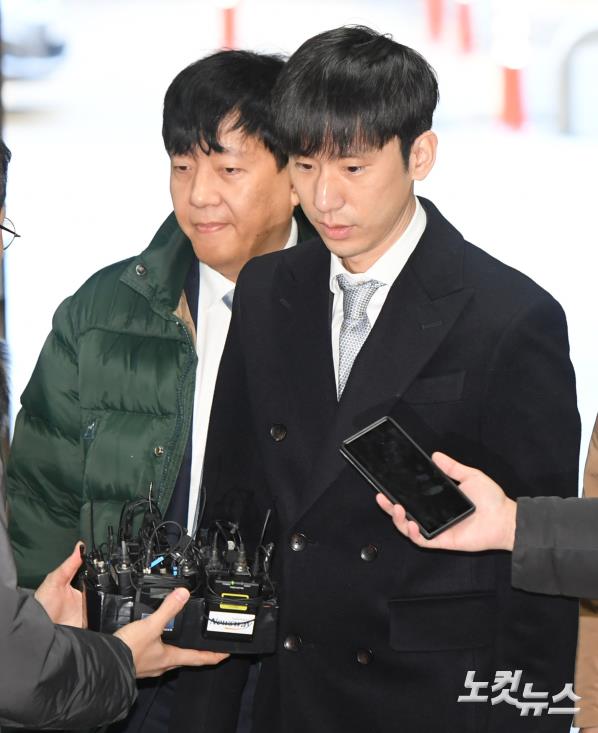여객자동차 운수사업법 위반 혐의로 기소된 이재웅 쏘카 대표(왼쪽)와 타다 운영사 VCNC의 박재욱 대표가 2일 오전 서초구 서울중앙지법에서 열리는 첫 공판에 출석하고 있다.