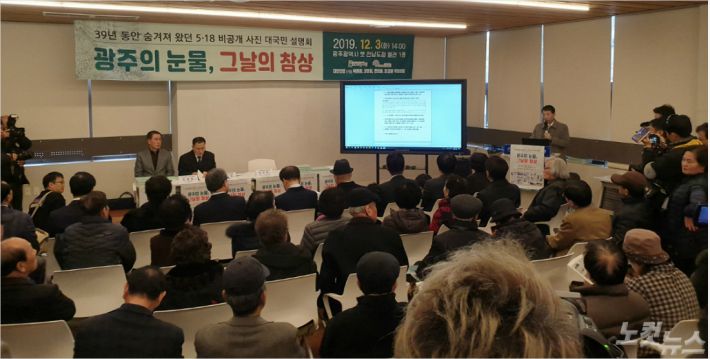 5·18 기념재단 등은 3일 오후 광주 동구 옛 전남도청 별관에서 '광주의 눈물, 그날의 참상'이라는 주제로 '5·18 비공개 사진 대국민 설명회'를 열었다.
