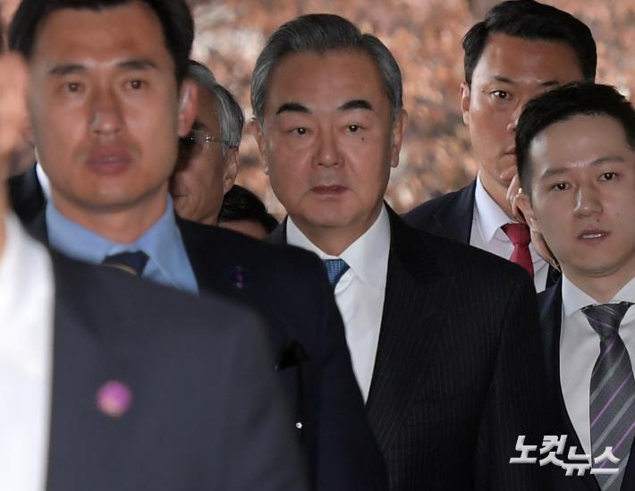 왕이(王毅) 중국 외교 담당 국무위원 겸 외교부장이 4일 오후 외교장관회담을 위해 서울 종로구 외교부청사로 들어서고 있다.