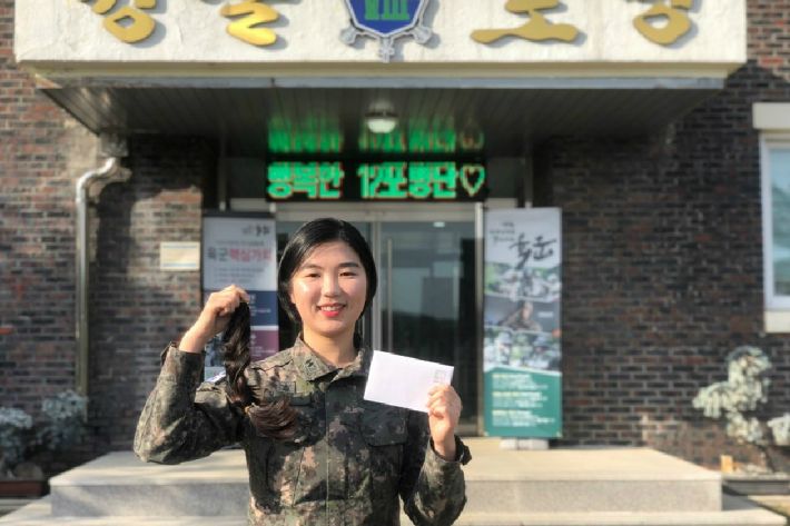 ◆ 임다은 중위> 11월에 했는데 머리카락만 보내기 그래서 편지도 한 통 썼어요. 제가 머리카락을 어떻게 길러왔고 어떤 마음으로 보내는지 담고자 응원하는 마음을 전하고자 편지를 한 통 써서 11월 중순쯤 보냈어요.